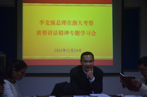 11月24日,沈黎勇书记在校团委党支部会议上传达了李克强总理来浙大考察重要讲话的精神,并就此专题开展了专题学习会。支部成员们认真听取了会议内容,并做了会议笔记。