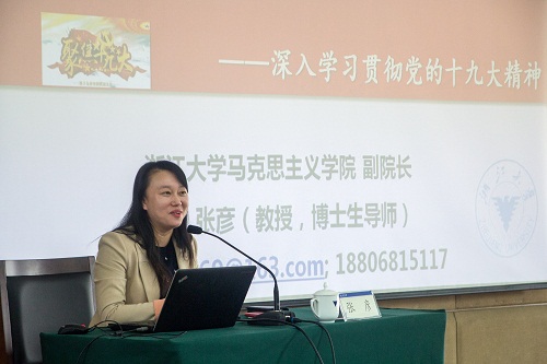 马克思主义学院副院长张彦教授以“新思想、新时代、新使命、新征程——学习宣传贯彻党的十九精神”为主题做关于学习宣传贯彻党的十九大精神的专题报告。张彦教授从党的十九大的大会意义和主题、两个重大判断、习近平新时代中国特色社会主义思想、十四条新基本方略、两个重要时期和“两步走”、新党章等方面对党的十九大精神进行全方位、深层次解读。共青团作为党的助手和后备军,只有高度重视、认真学习党的十九大精神,以习近平新时代中国特色社会主义思想为指导,加强组织、扩大宣传、深入实践,发挥团干部带头示范作用,才能促使十九大精神在广大团员青年中广泛传播。她希望,各位团干部要在思想上重视对十九大精神的学习和引领,要在行动上勇于担当、善于践行十九大精神学习政治任务。张彦教授的专题分享,既有对十九大报告原汁原味的准确解读,又有结合自身实践的所见所闻、所思所悟,引发团干部的思考和讨论。团干部纷纷表示要读懂、读透本次学习会发放的两本教材:《党的十九大报告辅导读本》和《习近平的七年知青岁月》,进一步增强“四个意识”,共同推动学校共青团工作发展。