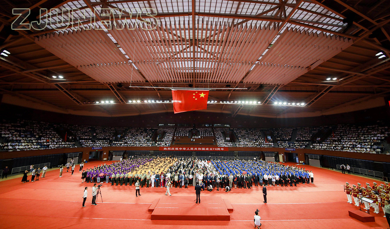 校党委书记任少波出席并讲话,校长吴朝晖主持升旗仪式。任少波指出,70年来,浙江大学始终与民族复兴同频共振、与社会大众同甘共苦。一代代求是儿女将对党的忠诚、对人民的赤诚,融入到为党育人、为国育才的实际行动中,融入到扎根大地勇攀高峰的奋斗实践中,融入到建设中国特色世界一流大学的不懈探索中,书写了爱国奉献、服务人民、追求卓越、改革创新、百折不挠的壮丽凯歌。