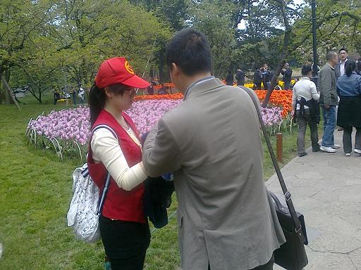 此次志愿活动由西湖志愿者活动负责人陶甄带领,23名志愿者参加了这次志愿活动。经太子湾景区管理员分配,到场人员共分为两组,在景区中各个人流量较大的地点进行秩序维护,信息咨询等工作。