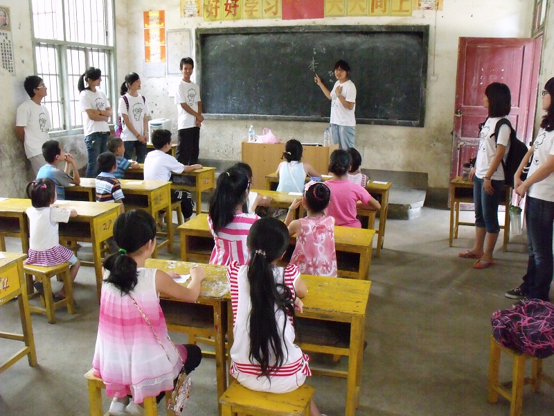 第二天,2010年7月16日,我们正式开始了支教活动。早上6点我在山里固有的明亮早晨中醒来,和城市中完全不一样。8点我们来到小学。看着小朋友们陆陆续续到来,在教室里你一句我一句,我们将桌椅摆成正式上课的样子,教室里坐下了20个小朋友。我们发给小朋友们每人一张纸一支笔,让他们写下姓名。我们团队先各自自我介绍,又让小朋友们每个人自我介绍,告诉我们他们的姓名、年龄、喜欢的科目、喜欢的体育项目等等,大家逐渐地熟络了。我们又为他们规定了一些小班规,选出了2个小队长,在黑板上写好课表和时间段,之后,就正式开始支教活动了。先是李斯宇和来冰莹同学给大家上美术课,课堂气氛生动活跃,之后语文课,高航同学讲了一首王维的《使至塞上》,小朋友们丰富了语文知识。下午劳技课,聂可心同学教小朋友们折了会跳的青蛙,大家比谁的青蛙跳得又高又远;之后自然科学课,李斯宇同学给大家讲了很多自然科学的知识,特别是有关动物有关狮子的。