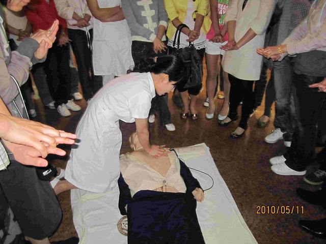 随后着重讲述了在危急情况发生时应采取的急救——常规CPR(心肺复苏)的具体判断方法和操作处理。通过精美的PPT展示以及生动详尽的解说,同时结合实际案例,让枯燥深奥的医理变得通俗浅显。之后叶护士使用了仿真人“安妮宝贝”进行了“心肺复苏术”的操作演示。随后,每个人轮流进行了实际操作,大家一边学一边记,在愉快的气氛里,大家都掌握了基本的心肺复苏术操作技能。