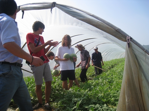 8月2日,在当地导游的带领下,意中师生来到了常山县同弓乡。同弓乡位于常山县郊区,是比较典型的农村地区。来到中国后一直在杭州等城市地区活动的意大利师生,趁此机会饱览了中国农村美景与风味。从亲自采摘西瓜到观看白鹭,意大利师生始终兴趣盎然。他们尤其对村民的日常生活以及村子里的各种特色建筑和文化传统表现出浓烈的兴趣。不少同学与当地村民交流、合影,还有一些同学自己动手尝试了从井中汲水等活动。