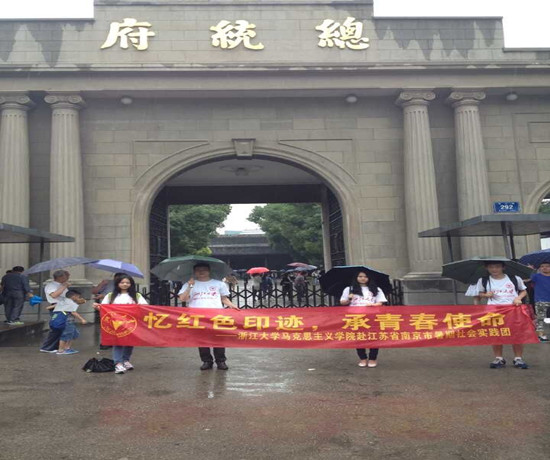 忆红色印迹,承青春使命。2015年7月初,浙江大学马克思主义学院研究生杨茜、陈寅瑛、曾子成、孙璟、冯光辉等五名同学赴南京进行了暑期社会实践活动,其中参观总统府是此次实践的重要一站。7月15日,通过游览总统府,使大家对中国近代史有了更深的了解,大家均表示此次参观受益匪浅,收获颇深,达到了预期效果。