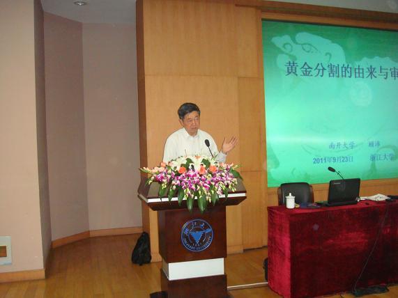 9月23号下午三点在蒙明伟楼138室,南开大学数学学院教授、首届“国家级教学名师奖”获得者顾沛老师应邀做客理学名师大讲堂,就数学文化专题为我校师生作“黄金分割的由来与审美”讲座。