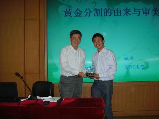 最后,顾沛教授为同学们介绍了斐波那契的生平,斐波那契数列协会和《斐波那契数列季刊》,之后将自己亲自编写的《数学文化》一书赠与浙大理科大讲堂。顾教授以其渊博的学识、睿智的谈吐 、敦厚的学者风度使在场的每一个人深感钦佩,难以忘怀。