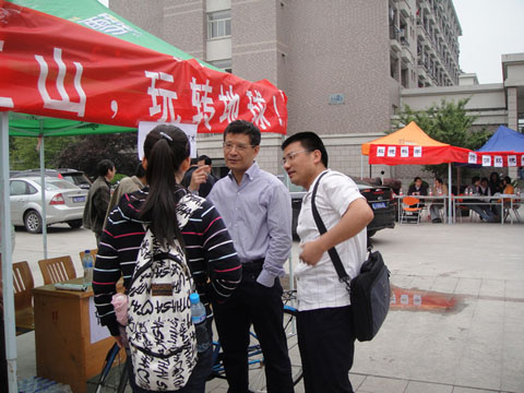 5月9日,在地球科学系副主任沈忠悦老师的带领下,地球信息科学与技术、大气科学、资源环境与城乡规划管理等几大本科专业教师代表在丹青广场为同学们举行了一场现场专业咨询会。现场专业指导服务人员还包括来自各专业的高年级研究生、本科生学长们。