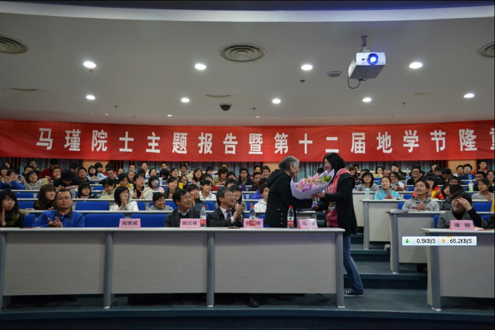 第十二届地学节开幕式结束后,杨树锋教授主持了本届地学节的开场报告。杨教授简单的介绍了马瑾院士,称赞马老师是一位出色的地学教育家。