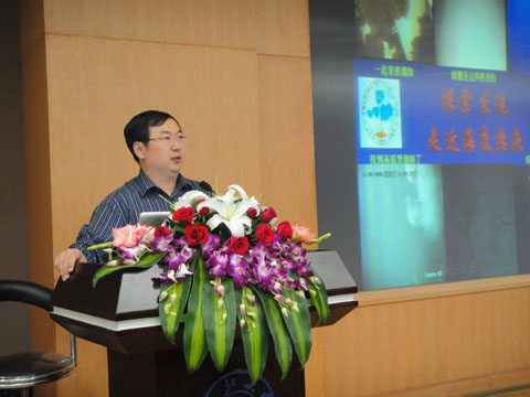 海底热液是20世纪海洋地质学最重要的科学发现,海底热液的研究处于当今科学研究的前沿。在陈老师的隆重介绍后,陶春辉老师开始带领大家进入海底世界,分享他的大洋之旅。“探索海洋,保护海洋,享受海洋”是他本次演讲的一大主要内容。海洋就在我们身边,陶老师分析了日本地震和海啸产生的原因,探讨了海洋资源的现状和潜力,号召大家要保护环境保护海洋资源。陶老师探索海洋热液精彩的令人骄傲的经历深深地吸引了同学们,神秘的海底世界、丰富的矿藏、深海生物基因、海权论等等都令同学们新奇,那精心制作的PPT动态模拟演示发现海底热液的过程更是让同学们对海洋探索产生了浓厚的兴趣。最后陶老师还对海洋的研究提出了展望并向大家展示了很多海洋勘探的仪器图片,让同学们大开眼界。