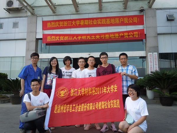 8月1日,由材料系党委书记王东老师、团委书记徐晗老师带队,浙江大学赴温州宏丰合金公司挂职实习小组开始了他们为期一个月的暑期实践活动。这次的实习活动旨在锻炼研究生、本科生的实干能力,将知识与实践相结合,也为浙江大学与温州企业搭建纽带,促进学校和相关企业之间的交流和合作。
