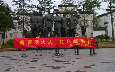 暑期七月,浙江大学能源工程学系大二学生开展了以“青春浙大人,红色皖南行”为口号的暑期社会社会实践活动,团队由组长王树林,组员林凯、周凌风、陈健杭、何安栋组成。