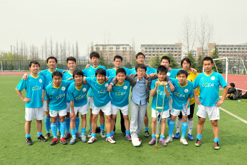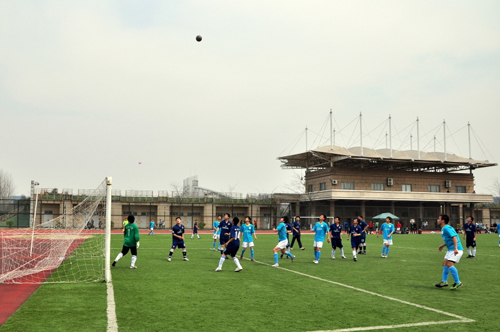 27日中午,紫金港西田径场上阳光灿烂。一番准备活动后,比赛于12时30分正式开始,我方攻北面球门。我方没有隐藏实力,一开始便展开猛烈的进攻,开场不到二十分钟就收获了第一粒进球,为此次比赛提供了一个好的开始。良好的势头明显鼓舞着队员的士气,建工队乘胜追击,仅上半场就把领先优势扩大到3:0。