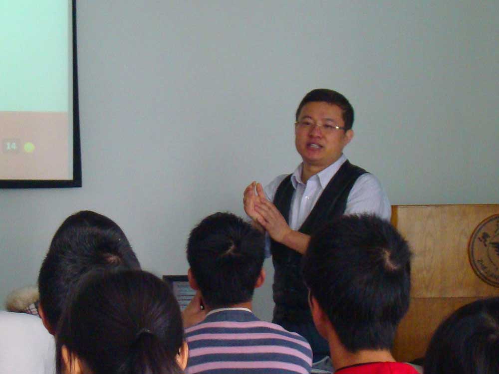 活动正式开始前,浙江大学数字媒体与网络技术系主任,计算机辅助设计与图形学国家重点实验室副主任,浙江大学计算机科学与技术学院教授,博士生导师耿卫东教授为前来参观的同学进行了一个简短的发言。他向同学们介绍了浙大数媒专业的发展历史,并对专业的现状与当前就业前景进行了简要的介绍。浙江大学数字媒体技术专业于2004年开始招生,在短短七年的发展历程中,已经建设成为“国家动画教学研究基地”,同时还成为“国家级第二类特色专业建设点”。他强调,数媒专业着眼于“技术为主导,技术与艺术相结合”,旨在培养兼具技术素质与艺术素质的现代复合型人才。在发言的最后,耿教授就课程学习方面向11级的同学们提出了自己的希望和要求。