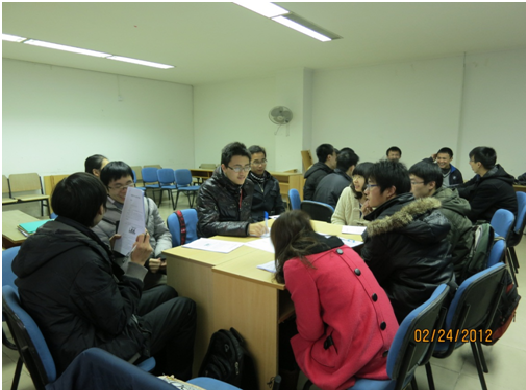 此次会议以竞赛形式组织,组织严谨,形式创新,设置有现场主持(第二支部副书记:刘鑫)、裁判员(第二支部党员:张超)、记分员(第二支部纪律委员:余泽鹏)、摄影(第二支部宣传委员:廖惟博,第二支部党员:练建强)、多媒体设备操作(第二支部书记:李文涛);以党的十七届六中全会相关问题为主题,充分调动了与会成员的积极性与学习热情,气氛热烈。