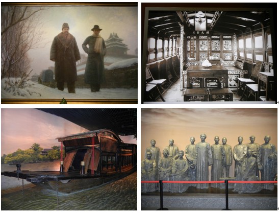 革命纪念馆,沐血奋斗书,铮铮铁骨情,何忍忘却乎?倚船观湖,波光粼粼,绿树凭栏,映影湖光,人鱼同戏,天地共欢,人文风光,堪比西子。烟雨楼台,多少风光?党一大魂,隐逸其中,飘忽天地,熠熠生辉。