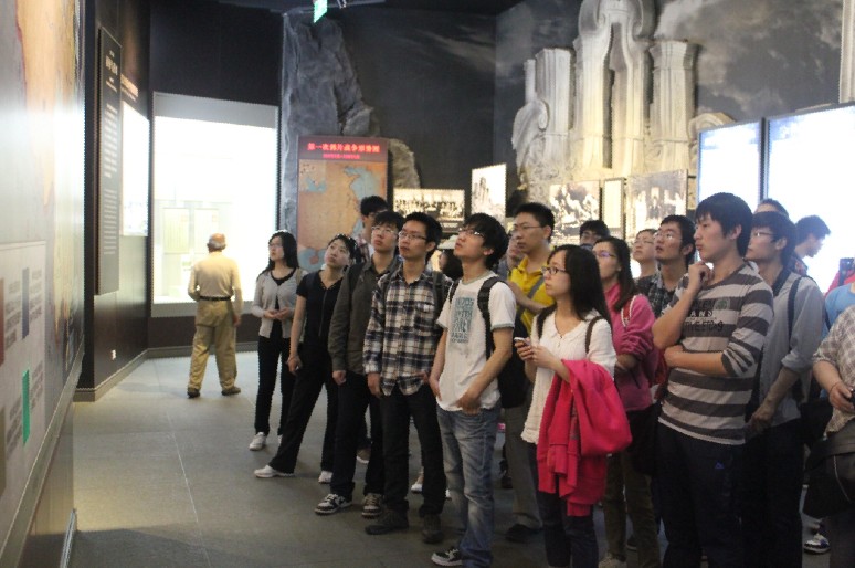 首站来到南湖革命纪念馆,里面的工作人员热情地接待了我们。据工作人员介绍,纪念馆于1985年始建于湖心岛,后经历史变迁,坐落在南湖之泮的新馆于2011年建党九十周年纪念前夕正式对外开放。新馆陈列由“开天辟地”和“光辉历史”两个展览组成,重点突出中国共产党创建整个历史背景和过程,体现南湖革命纪念馆作为党的诞生地纪念馆的地方特色,同时又将展览内容向后延伸至当代,较为完整地展示中国共产党90年的光辉历史。