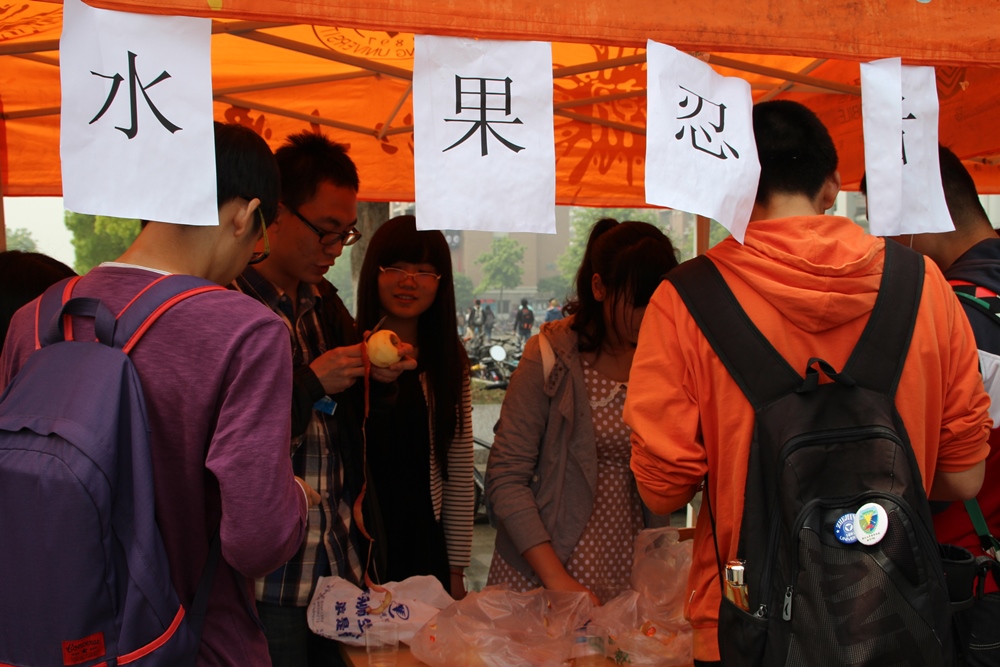 由学院团学联组织的游园会活动同样精彩。精心装扮的帐篷、随风飘扬的彩带、妙趣横生的游戏,很快每个摊位前都聚满了来来往往的同学。记忆大比拼,面对五颜六色的水果,拼的是眼里更是脑力;果汁品鉴,观嗅品辨,喝下去的是甜蜜,品出来的是幸福;寿司1+1,只有你想不到没有你做不到,品尝亲手制作的食物也别有一番风味;更有智勇大闯关、大家来找茬、食来运转、纸飞机……玩游戏,品美食,夺大奖,笑容洋溢在每一个参与者的脸上。蒙蒙细雨中处处团聚着如火的热情。