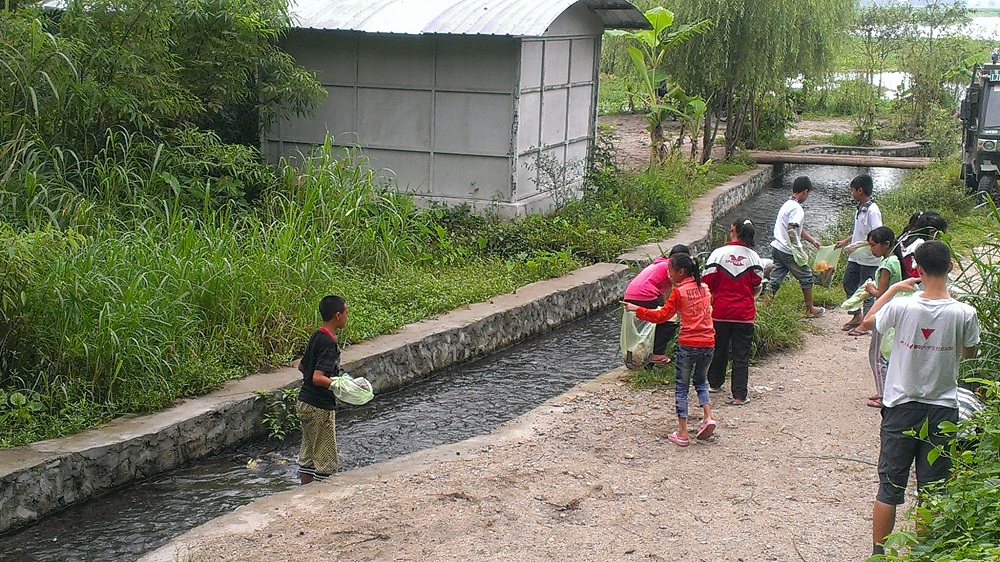 7月18日,云南省盈江县美丽的香额湖畔,在来自浙江大学的两名志愿者的带领下,旧城镇中心中学的12名小学生进行清理垃圾的活动。经过环保小卫士们一个多小时的努力,原来有很多垃圾的地面和湖边又恢复了昔日的“美貌光泽”。