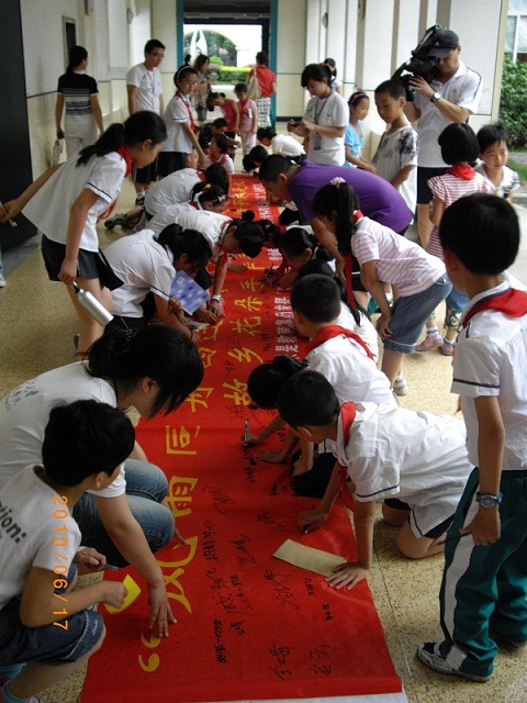 作为实践的前期准备,青马学员们从往年赴湄潭实践的队员那里了解到,湄潭马义小学的办学条件十分艰苦,五年来虽然一直得到医学院师生的帮助,但仍有许多方面亟待改善。于是,实践队员们在6月17日,携手杭州求是小学(竞舟)校区的师生,一同开展了以“故乡花朵手牵手,共同传承求是火”为主题的爱心募集和结对活动,以在求是小学和马义小学之间筑起一座爱心的桥梁,让两地的孩子相互帮助勉励,共同成长成才。此次活动共募集了742本各类书籍,35个书包,价值近千元的文具、玩具和衣物,以及一千多元的爱心善款,活动还得到了浙江电视台少儿频道的全程报道。活动募集到的物资将悉数捐赠给马义小学。杭州的一位孙总在了解了此次活动之后,表示愿意向马义小学捐赠万余元的物品,用于改善马义小学的日常教学和学生的在校生活条件。
