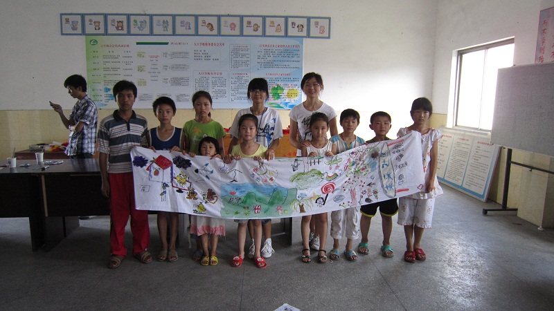 下午原定于一点开始的活动应孩子们的强烈要求提前开始,三块洁白的画布被铺上课桌,经过简单的分组和讲解之后,小朋友们争先恐后地拿起画笔,在布幅上一展才华。写意的山水屋瓦小桥流水,瑰丽的奇思妙想未来社区,栩栩如生的人物动物在小朋友与团队成员的齐心协作之下跃然成形。画卷大功告成之后我们为小朋友们准备了有趣的知识讲座和游戏,作为社会实践支教部分的最后一天在游戏的欢声笑语中落下帷幕。我们的成员满载着欢乐,一身疲惫地回到宾馆,开始准备明天的义诊。