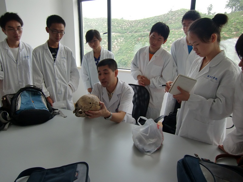 当我们到达15楼脑外科的时候,医生护士们已经在交班了,我们就到旁边的房间换了一身行头,经过变装,组员们还真有点医生的范儿。8点30分左右,医师带我们查房(队伍也太庞大了一点)。在病房,医生教我们查房的规范,“进门要轻,老师先进”,这是以后我们在实习过程中要注意的。病人们的状态还不错,对我们的大规模围观也没太在意,使我们查房很顺利,还获得了一些临床教学的材料。9点左右,查完房,医生去开医嘱,我们也去看看,顺便学学怎么开医嘱,开医嘱需要注意点什么。9点30分,医嘱开完,医师带我们来到示教室,跟我们讲述临床知识。以刚查房的病人为例,医师给大家介绍脑外科患者的主要症状、生理变化、并发症以及治疗措施,同时也跟我们讲解了脑外科最新的材料与技术,如钛合金等。接下来的一小时,我们就在示教室里听医师讲学,从刚接触的病人讲到以前碰到的类似的案例,用通俗易懂的语言来讲述比较学术的意义,让大家比较容易接受。经过老师的讲解,大家受益匪浅,相信在以后的临床实践中会有所帮助。