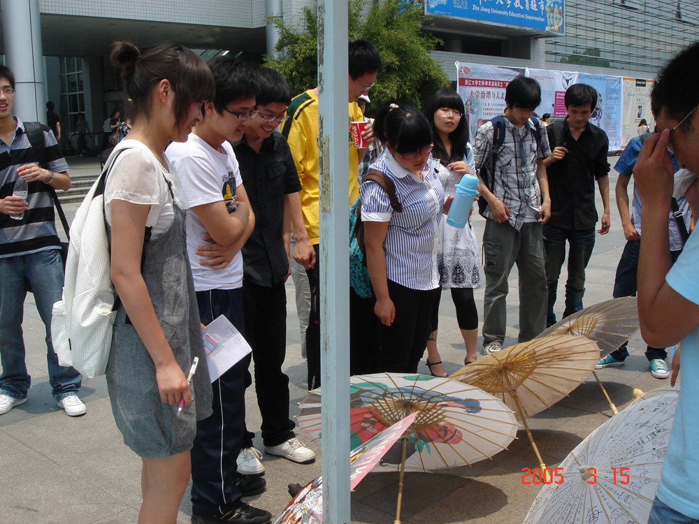 5月23日晚,所有参赛的油纸伞回收并进入了初评阶段,5月24日经过评委们严格的筛选比较,10把充满诗情画意的油纸伞进入了最后的决赛阶段。5月25日中午经过在文化广场的现场投票后,本次“画意江南”油纸伞的前三名产生了,分别是:第一名来自人文科学实验班0908班的裘晓翔,第二名来自美术学0801班的徐小忆、刘含之、金钧,第三名来自艺术设计0901班的高翔。