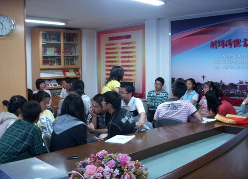 5月11日晚,2010年第1期入党积极分子培训班丹青学园教学八班在班主任郑玲玲老师及四位青马学员的带领下进行了将近2个小时的第一次小组讨论。