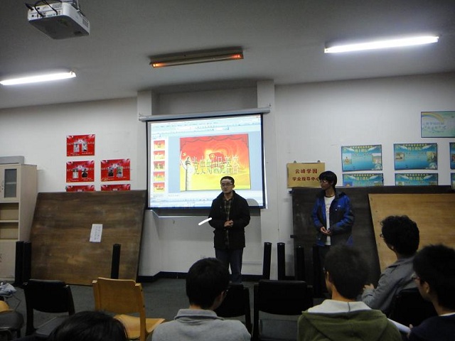 11月23日下午,紫云4舍活动室中传来阵阵掌声和笑声。这便是我班团日活动的现场,观电影,唱红歌,我班41名团员在形式多样的活动中体会着我党、我团精神的点点滴滴。