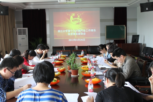 4月26日上、下午,校团委分别在玉泉校区第十教学楼和第三教学楼会议室召开第十九次团代会工作报告征求意见座谈会,听取各院系对工作报告的意见建议。校团委书记刘艳辉、副书记傅方正、三十余位玉泉校区各院系团委负责人和学生代表参加会议。