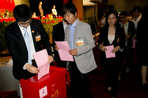当天下午,大会以无记名投票的方式,选举产生了由45名委员组成的共青团浙江大学第十九届委员会。大会审议通过了关于工作报告的决议,充分肯定学校第十八届团委的工作,一致赞同报告对过去六年工作的总结。大会认为,自浙江大学第十八次团代会召开以来,学校团委高举邓小平理论和“三个代表”重要思想伟大旗帜,深入贯彻落实科学发展观,围绕学校建设世界一流大学的战略目标,着力构建“思想引领、组织建设、实践育人和校园文化”四大工作格局,激扬青春,勇担责任,奋发有为,团结带领全校广大团员青年为建设世界一流大学贡献力量。