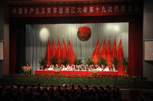 5月27日,中国共产主义青年团浙江大学第十九次代表大会在紫金港校区剧场隆重召开。浙江省人大常委会副主任、校党委书记金德水,团省委书记周艳分别代表学校党委和团省委到会祝贺并讲话。校团委书记刘艳辉作了题为《激扬青春 勇担责任 奋发有为 团结带领全校团员青年为建设世界一流大学贡献力量》工作报告。500余名团干部和青年学生齐聚一堂,代表全校5万余名团员青年,共同谋划学校共青团工作。